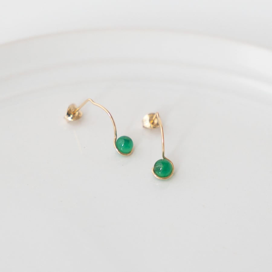 グリーンオニキスを包みこむ14kgfのやわらかな曲線がポイントのピアスです。