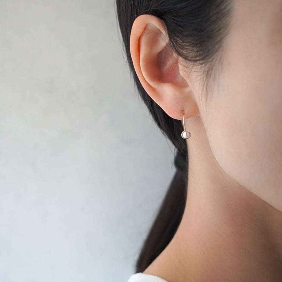 ちいさな淡水パールを包みこむ14kgfのやわらかな曲線がポイントのピアスです。